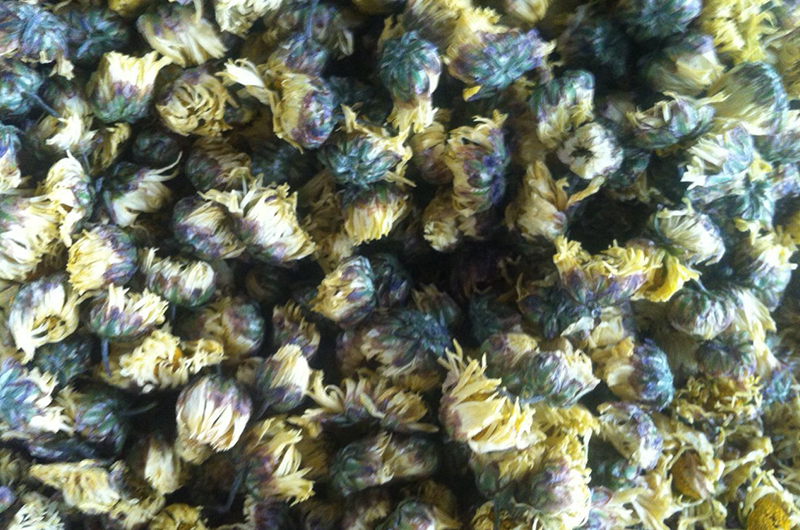 懷菊花的加工工藝一般就是烘干殺菌。新鮮采收的懷菊花可以將它們通過上料坡送入網帶式烘干機進行連續烘干,鮮菊花從進料口到烘干好出料,只需要3-4個小時的時間,采取傳統的干燥設備需要十個小時,可以說這種帶式菊花烘干機大大提高了工作效率。 武陟縣是懷菊花的主產地,今年種植面積一萬兩千畝,一般5公斤鮮懷菊花能出一公斤干菊花,產地價格每公斤干菊花100元左右。干菊花產量今年能夠達到兩千四百噸,產值達到一億九千萬元,對農業增效農民增收起到很好地帶動示范作用。