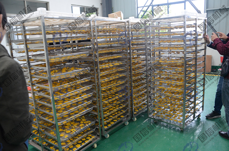 5,干凈衛(wèi)生,整個烘干過程在烘干房內進行,不會有外部污染物進入,熱源產生的也是純凈的熱風,不會對菊花產生影響,保證了烘干后的菊花達到食品和藥品標準。