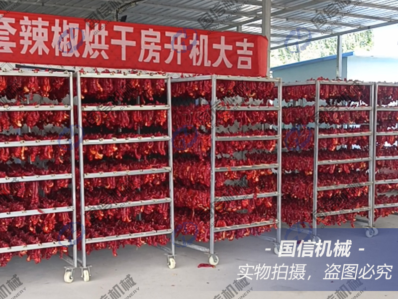 2.中溫脫水階段(60-65℃): 待辣椒表面略微收縮后,可適度升溫,加速內部水分向外遷移。此階段是核心脫水期,需加強排濕,將濕度控制在40%以下,避免濕熱環境導致辣椒發霉或產生不良發酵氣味。