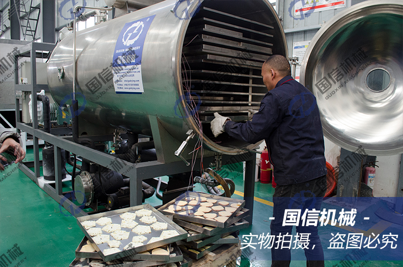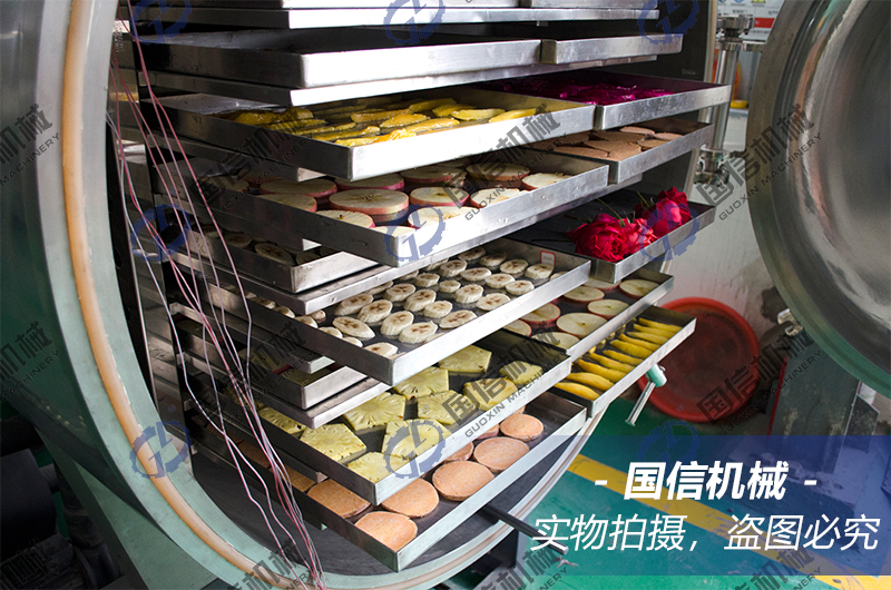 導(dǎo)讀:國(guó)信機(jī)械生產(chǎn)的果蔬真空冷凍干燥機(jī),是在真空狀態(tài)下,利用升華原理,使預(yù)先凍結(jié)的果蔬中的水分不經(jīng)過(guò)冰的融化直接以冰態(tài)升華為水蒸汽被除去,從而使果蔬干燥,避免了傳統(tǒng)脫水技術(shù)方法帶來(lái)的變色、變味、營(yíng)養(yǎng)成分損失大、復(fù)水性差等缺陷,大限度的保持原料果蔬的外觀品質(zhì)和營(yíng)養(yǎng)價(jià)值;并具有保持原食品的色、香、 味、營(yíng)養(yǎng)不變、復(fù)水性好、重量輕、可常溫貯藏等優(yōu)點(diǎn)。