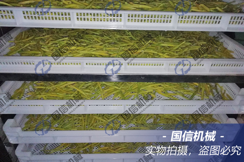 大型黃花菜烘干房內部可以放置15個推車,共360個托盤,日烘干處理鮮黃花菜片5噸左右。