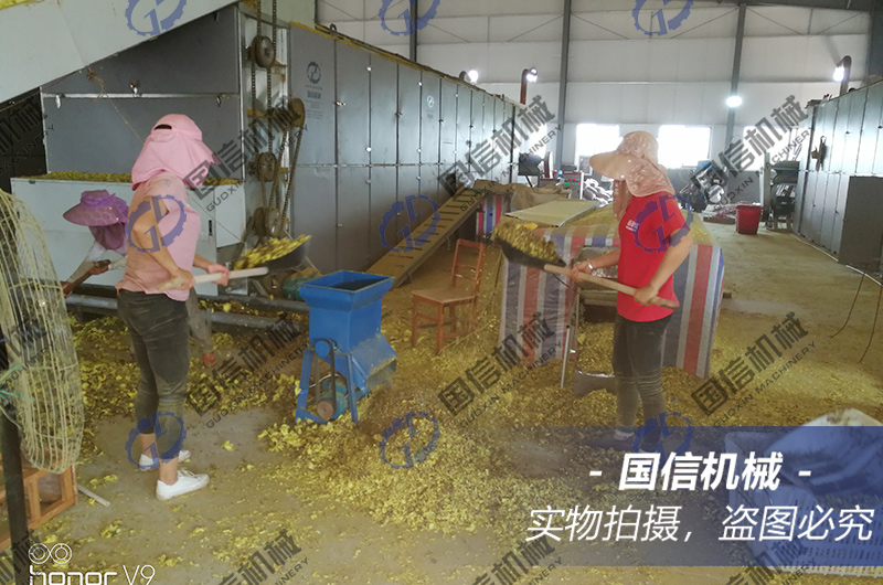 3、循環(huán)翻轉(zhuǎn)和熱風穿透烘干的模式,將烘干效率提升了幾十倍,正常來說,黃蜀葵從進料到出料,4~8個小時即可。